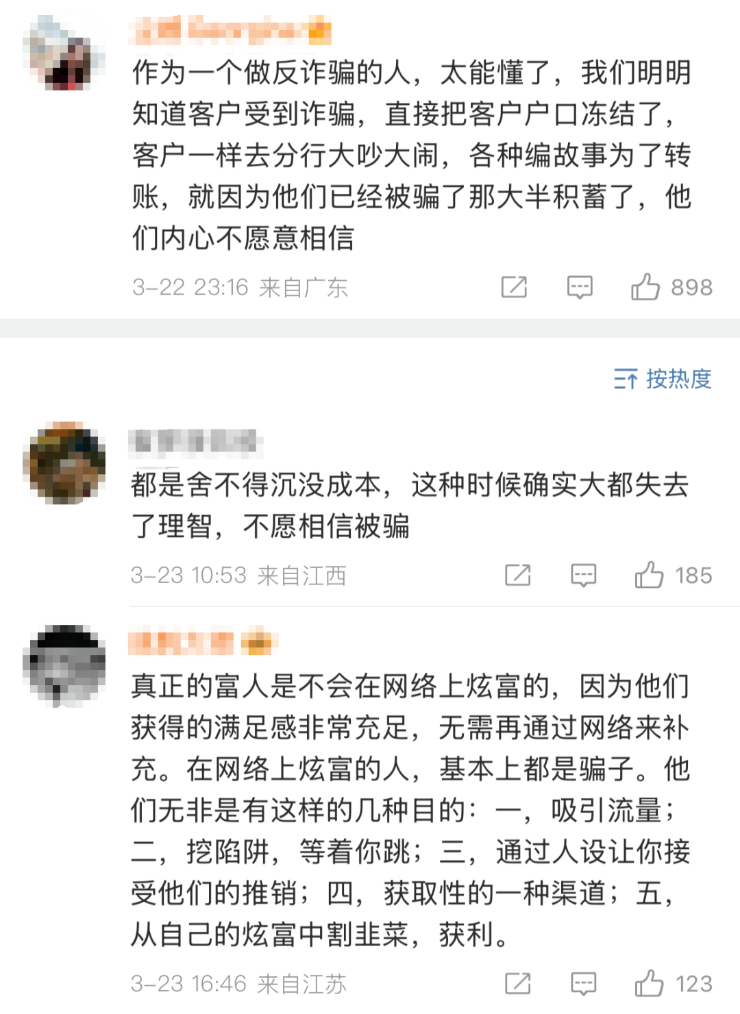 视频发出后,有网友在评论区留言鼓励:“加油,千万要振作起来!”也有网友分享自己遇到的诈骗案例。
